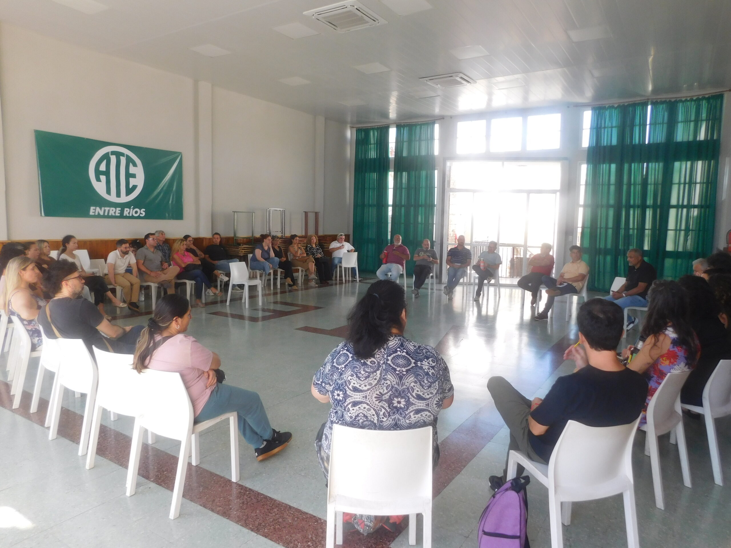 Por la mañana de este miércoles 26, el Cuerpo de Delegados de Paraná se congregó para evaluar la respuesta del Gobierno. Ante la negativa del Ejecutivo provincial al confirmar que las negociaciones salariales permanecerán cerradas hasta febrero, el Consejo Directivo Provincial de la ATE resolvió para el día 4 de diciembre una Jornada Provincial de Lucha, con movilización hacia la secretaría de trabajo, en defensa del salario y las condiciones de trabajo.