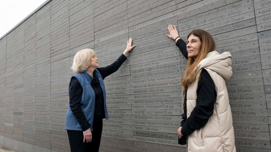 «Es increíble», aseguró King al levantar la vista y contemplar la extensión del monumento que se erige frente a las aguas del Río de La Plata, donde fueron arrojadas muchas de las víctimas.