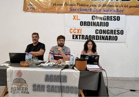 En el Congreso Extraordinario de AGMER, realizado en la jornada de hoy en San Salvador, los docentes se declararon en estado de alerta y movilización debido a los recortes y cierres en la educación, además de advertir sobre el impacto de las reformas regresivas en los sistemas educativo, previsional y laboral. Se convocó a una jornada de lucha en los Institutos de Nivel Superior para antes de fin de año por el posible cierre de cohortes y carreras en la provincia, según información enviada a DIARIOJUNIO.