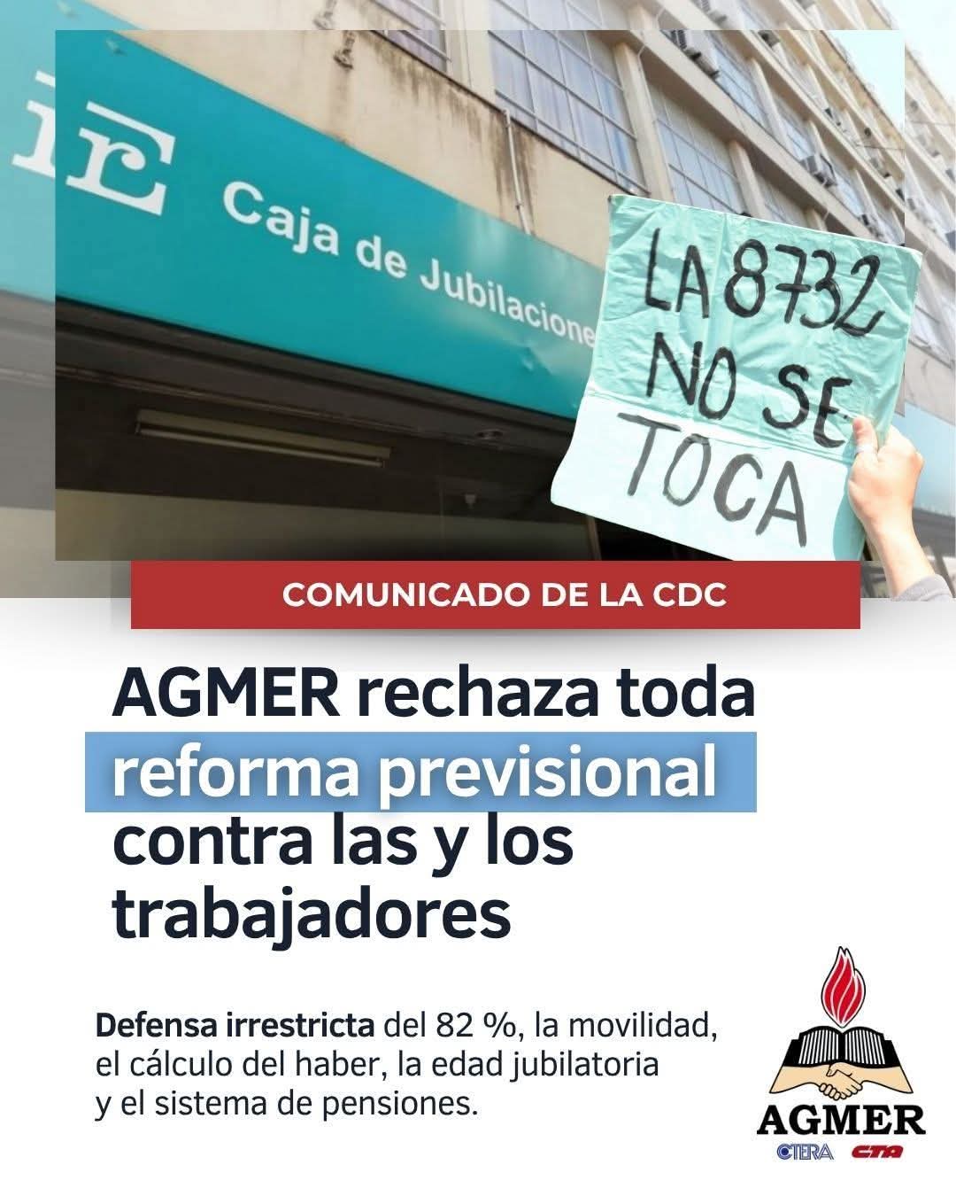 AGMER rechaza una posible reforma previsional y advierte que no será “variable de ajuste”