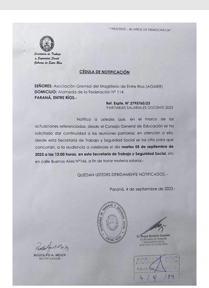 Los miembros paritarios de nuestro sindicato asistirán a la audiencia con las demandas del colectivo docente expresadas y ratificadas por el Congreso Extraordinario de AGMER.