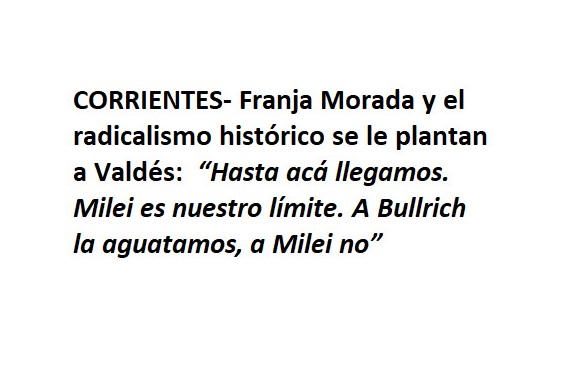 El dispositivo fiscalizador para la segunda vuelta del 19/11 que el Gobernador correntino ya le vendió a Macri y al candidato de la LLA a cambio de hipotéticos cargos nacionales, encontró una férrea resistencia en la juventud radical, en la Franja Morada y en el radicalismo dogmático: “Hasta acá llegamos. Milei es nuestro límite. A Bullrich la aguatamos, a Milei no”, le dijeron jóvenes radicales a Claudio Polich, ministro de obras encargado de armar los equipos de fiscalización en la Capital.