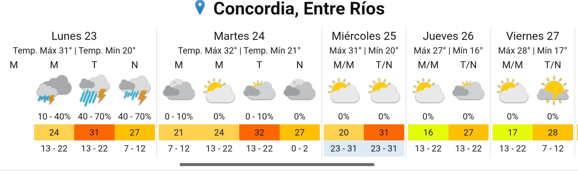 Alerta amarilla por tormentas fuertes este lunes en Concordia y la región