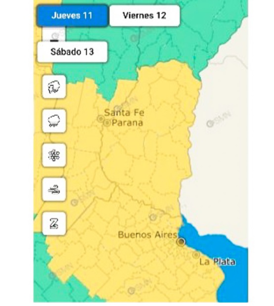 El Servicio Meteorológico Nacional emitió un alerta amarillo para toda la provincia debido a la llegada de lluvias y tormentas fuertes que se esperan para este jueves por la tarde-noche. Desde las 16:30, hace una hora, una tormenta con ráfagas de viento comenzó en Concordia, lo que marca el inicio de un fenómeno climático que se intensificará durante las próximas horas, según información enviada a DIARIOJUNIO.