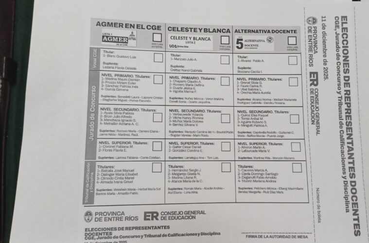 Docentes a las urnas: más 26 mil trabajadores de la educación entrerriana eligen hoy a sus representantes en el CGE