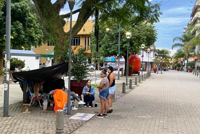 “En vez de atender a la gente y escucharla, los larga afuera, los maltrata. Esa es la intendencia que tenemos: deshumanizante. Antes estaban bajo techo, con cierto reparo. Hoy es un día feo, hubo una lluvia y puede volver a llover”, remarcó. Adente indicó que estaban trabajando para conseguir una carpa para no que pasen la noche a la intemperie. “Están sin trabajo y son maltratadas”.