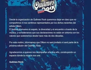 El comunicado en redes de Quilmes Rock, poniendo distancia de los dichos de Dillom.