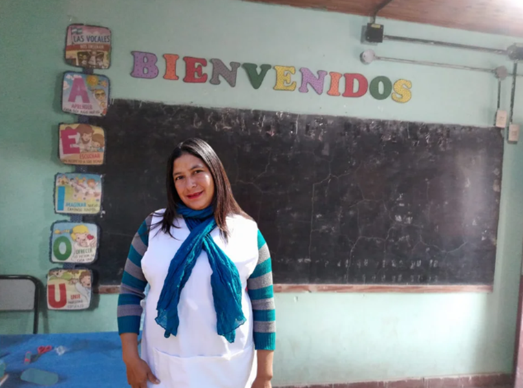 Gloria Cisneros trabaja en la Escuela Primaria N° 793 “Don Carlos Arnaldo Jaime”, en Taco Pozo, Chaco. Con 39 años y más de nueve de experiencia en contextos rurales extremos, recorre a diario y en moto largos caminos de tierra para garantizar el derecho a la educación de niñas y niños que viven en parajes aislados.