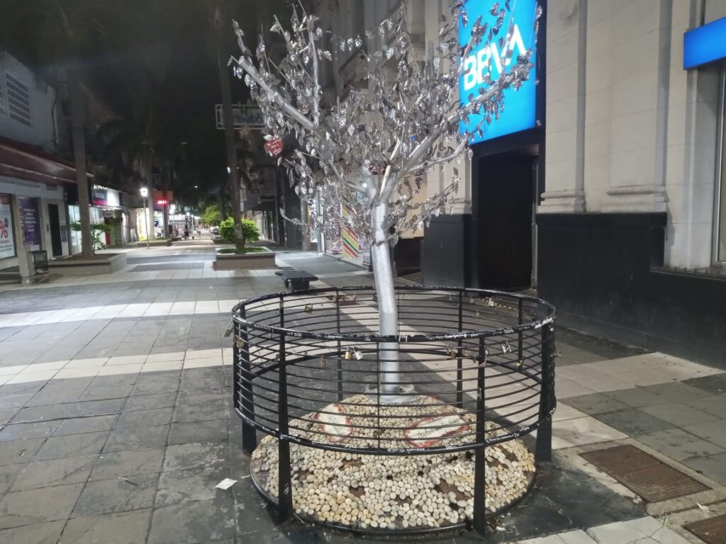 El arbolito está allí, erguido con sus hojas plateadas y sus piedritas al fondo. Algunas personas pasan y miran, los turistas se sacan fotos, otros van raudos, indiferentes a su tiesa existencia.No me mueve ningún juicio estético, ni ético ni político, para reparar en él... Fue más bien mi asombro por su remoción lo que me retrajo.