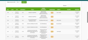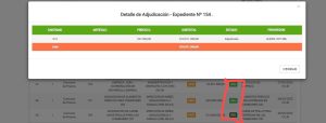 Con anterioridad, los registros online mostraban un botón verde con la sigla “ADJ” junto a cada expediente. Al hacer clic, se desplegaba un cuadro con datos completos: cantidad adquirida, precio unitario, subtotal, estado de la adjudicación y nombre del proveedor.