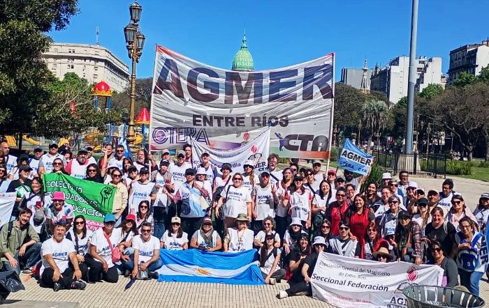 Por otra parte, la seccional Concordia del sindicato docente estuvo presente en la manifestación que se llevó a cabo en la Ciudad Autónoma de Buenos Aires (CABA) esta mañana. Desde las 10 horas, miles de docentes de todo el país se concentraron frente al Congreso Nacional y marcharon hacia la Secretaría de Educación de la Nación, donde se llevó a cabo un acto central. Se concentraron en la plaza Congreso, marcharon por avenida Callao hasta el Palacio Pizzurno, donde funcionaba el Ministerio de Educación de la Nación (la gestión libertaria lo bajó de rango a Secretaria).