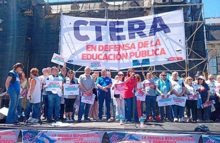 En su discurso, Sonia Alesso, Secretaria General de CTERA, expresó: “Hoy estamos en la calle, una vez más, para exigir lo que nos corresponde: la restitución del FONID, la convocatoria urgente a la Paritaria Nacional Docente, el envío de fondos para infraestructura escolar y la defensa del financiamiento educativo. No vamos a permitir que se siga ajustando sobre la escuela pública y los salarios de las y los docentes”.