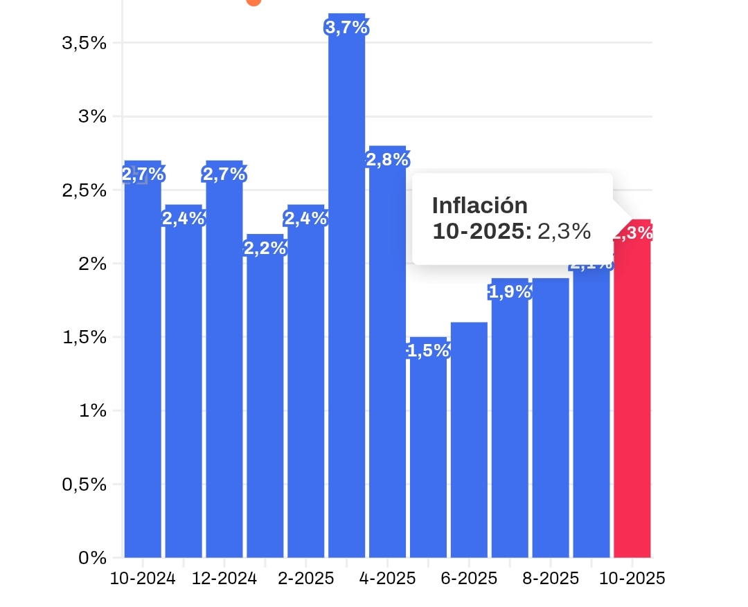 En tanto, los bienes presentaron una variación de 2,3%, mientras que los servicios registraron un incremento de 2,5% en el mes.
