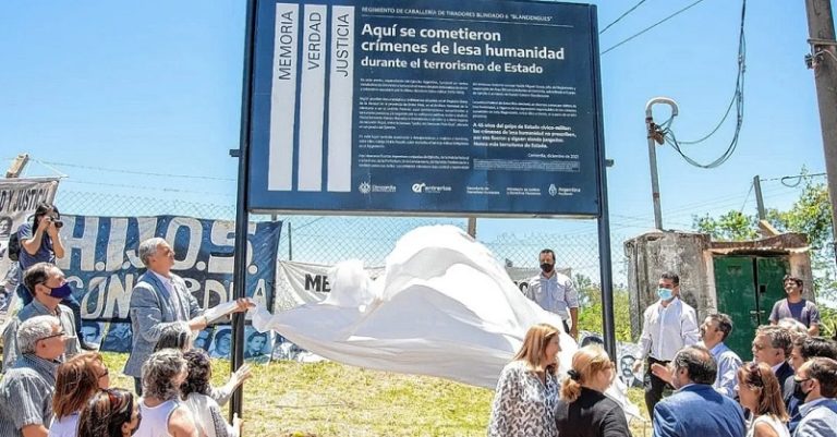 El cartel original que señalizaba al Regimiento 6 como Centro Clandestino de Detención y Tortura durante la última dictadura se había volado una vez como consecuencia de un temporal pero lo pudieron recuperar debido a que lo habían levantado operarios municipales: estaba en el Corralón de calle Moulins. Pero fue derribado nuevamente por otra tormenta en la madrugada del 20 de marzo pasado de 2024 y posteriormente desapareció del lugar donde estaba ubicado, sobre calle Arruabarrena, frente a los galpones donde se guardan los tanques. Pese a ello, agrupaciones y organismos de Derechos Humanos de Concordia decidieron volver a diseñarlo e instalarlo con soportes más resistentes una vez más para preservar la memoria de los crímenes de la dictadura y garantizar su permanencia en el espacio público. Esta mañana presentaron una nota en el Concejo para que autorice las tareas de instalación.