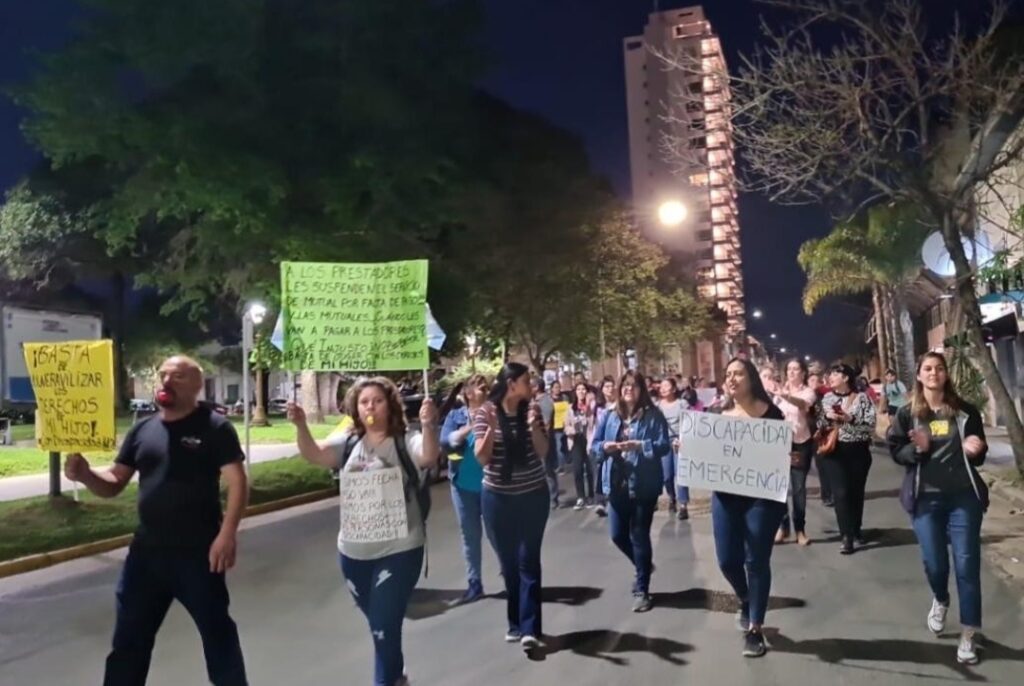 Bajo el lema “Discapacidad en Alerta!, profesionales de centros de atención, acompañantes terapéuticos, maestras integradoras, padres y trabajadores de centros de rehabilitación en general, se encuentran reunidos desde las 19 hs de este viernes en la Plaza Urquiza de Concordia, en reclamo por mejoras laborales y la regularización de sus salarios. En ese contexto, una de las damnificadas, Evangelina Moix, informó a DIARIOJUNIO que el sector se encuentra de “paro por tiempo indeterminado” y detalló que la consigna de esta tarde es marchar hasta la plaza 25 de Mayo y exponer ante la ciudadanía la difícil situación que atraviesa el área de discapacidad.
