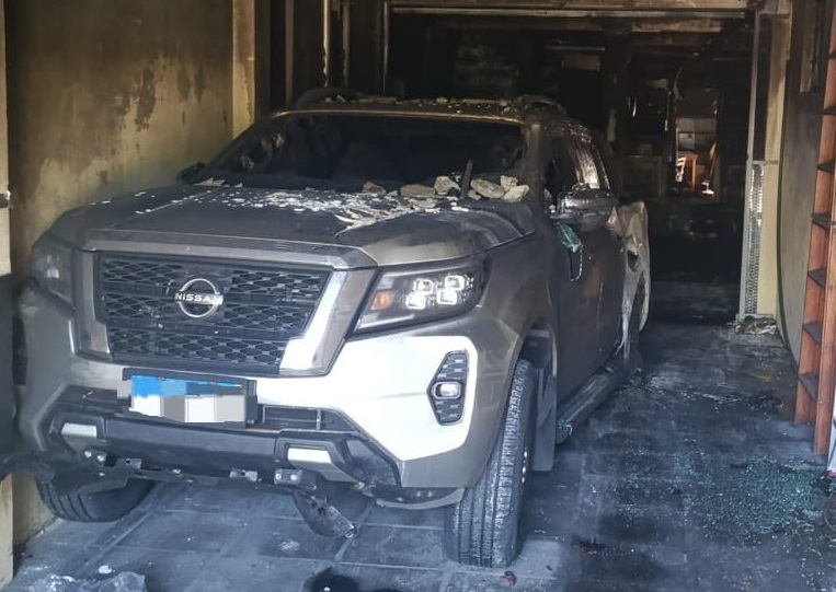 Los bomberos retiraron los vehículos hacia el exterior. Una Ford Transit de color blanco mostraba en su carrocería rastros ennegrecidos por las llamas. “Hay otra en el interior que está más afectada que esa”, agregó Medina. Se trata de una Nissan Frontier gris. Los tres vehículos son propiedad de la persona detenida.