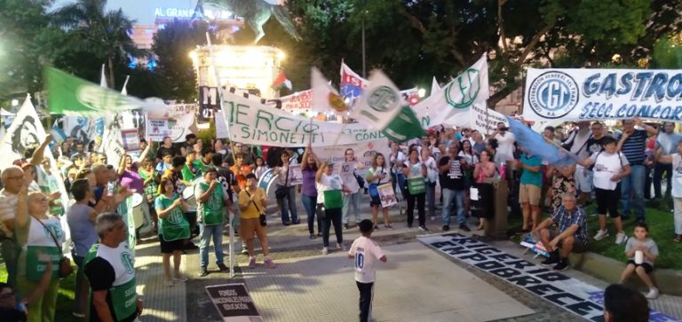 Esta tarde se llevó a cabo la movilización desde la Plaza Urquiza hasta la Plaza 25 de Mayo de las CGT Regional Concordia junto a la CTA y los gremios que componen ambas centrales. Los manifestantes caminaron a lo largo de calle Urquiza hasta la plaza principal; se agruparon en el gazebo donde se leyó un documento previamente acordado entre los sindicatos. En la columna, de más de una cuadra de extensión, había sindicatos tanto de la CGT como de la CTA: el Centro de Empleados de Comercio (CEC), la Unión Ferroviaria, La Fraternidad, ATE (Asociación Trabajadores del Estado), Agmer, Camioneros, Apinta (trabajadores del INTA). También estaba presentes representantes de organizaciones sociales como el MTR (Movimiento Teresa Rodríguez), el MTE (Movimiento de Trabajadores Excluidos) o el Frente Surge. Y en la plaza 25 de Mayo estaban esperando los integrantes del Colectivo de Trabajadores de la Educación, la UJS (Unión de Juventudes del Socialismo) y del Partido Obrero, según pudo registrar DIARIOJUNIO.