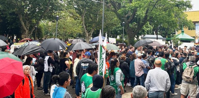Santos Avallone, secretario adjunto del STEMC (Sindicato de Trabajadores y Empleados Municipales de Concordia), dijo esta mañana a DIARIOJUNIO que era “una tristeza ver a la municipalidad llena de policías”. “El intendente se lava la boca hablando de que es una gestión de puertas abiertas. La verdad es vergonzoso: hay más policías que empleados adentro”, remarcó. «Lo importante es que la gente venga, que recapacite, que esto es una lucha de todos. Si perdemos hoy, estos dos años vienen por todo. Después, que no digan que los culpables somos los gremios que no hacemos nada. Aquí tienen que estar todos los trabajadores; basta de miedo, basta de persecución. Nunca se ha visto, hemos peleado en tiempos de (Hernán) Orduna, de (Juan Carlos Cresto) “Calucho”, pero nunca pasó lo que está pasando ahora”, afirmó. Por su parte, Pedro Pérez, secretario general de ATE Concordia, indicó que estuvieron dialogando con las autoridades policiales para que haya un contacto entre el Ejecutivo, los despedidos y los responsables de los gremios. Pero hasta las 10 de la mañana no había perspectivas de que eso llegase a suceder. “No hemos tenido ninguna respuesta favorable”, indicó.