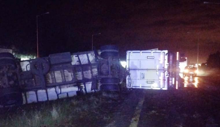 El acoplado se desprendió del camión, cayendo al cantero central, destruyéndose y volcando la carga en el suelo. Debió actuar personal de Bomberos Voluntarios por combustible derramado en la cinta asfáltica. La empresa envió una grúa y otro camión para hacer trasbordo de mercadería.
