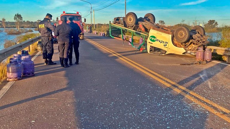 En la escena del accidente, se encuentra trabajando personal de Criminalística y Bomberos Zapadores, estos últimos en prevención debido a que la camioneta transportaba garrafas de 10kg, la mayoría de las cuales fueron arrojadas al arroyo como consecuencia del vuelco.