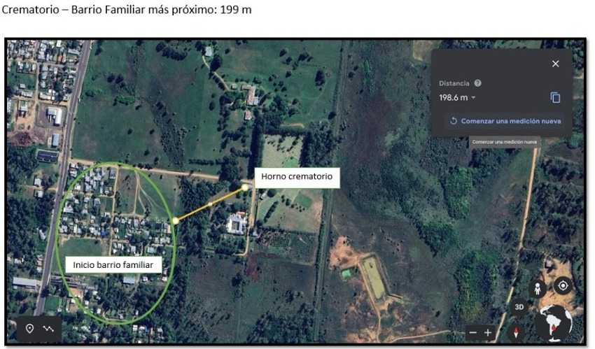 En la nota también adjuntan un archivo que demuestra que la información que les habría comentado Guillaume que manejaba es incorrecta, y se refería a que la distancia más próxima al horno crematorio del Cementerio Pinar del Campanario del Obispado de Concordia era un hotel ubicado a 1000 metros.
